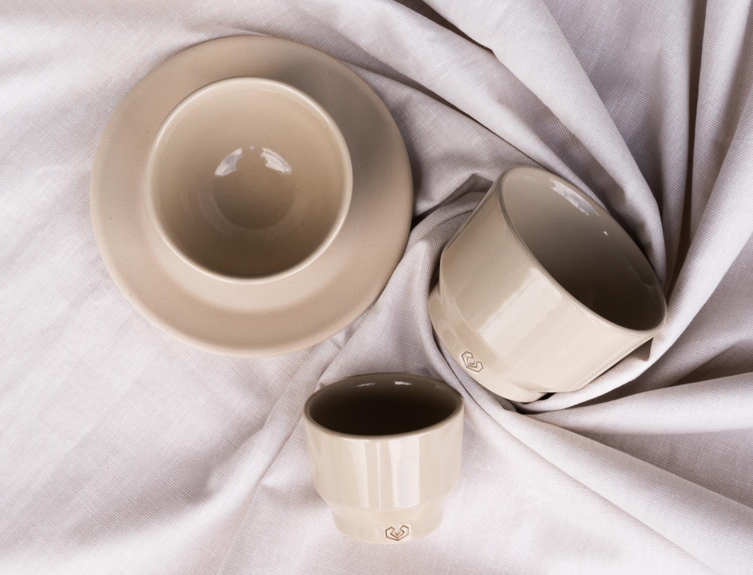 Our tableware comes without handles on principle of design and our genuine aesthetics, so for the use of our tableware we advise to pour only liquids with a temperature you and your guests can handle without risk of scalding. We do not take over any liability for injuries, which arise from the use of our ceramics.